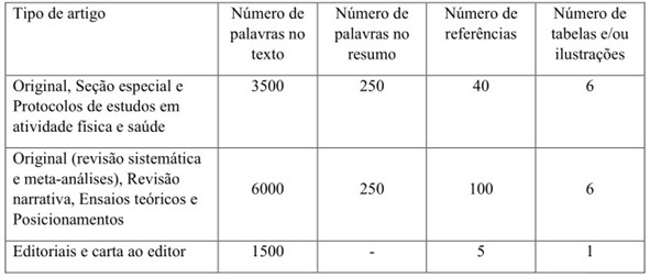 A Revista Brasileira de Atividade Física e Saúde (RBAFS) publica artigos nos seguintes formatos: