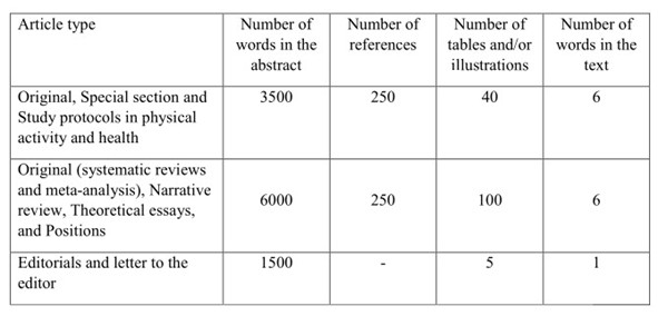 - Special section – intended for publishing studies that address innovative actions and experiences in promoting physical activity, teaching topics related to physical activity, and research methods in physical activity and health.