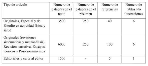 La Tabla 1 contiene orientaciones para la preparación de manuscritos con el número máximo de palabras, caracteres, referencias e ilustraciones permitidas según la sección de publicación.